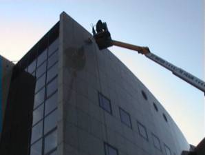 Geachte bezoeker : Wij reinigen voor u alle soorten gevelbeplating, natuursteen, trespa, metaal enz Het reinigen van gevel beplating op grote hoogte met eigen hoogwerker : Voor meer informatie kunt u contact opnemen met: